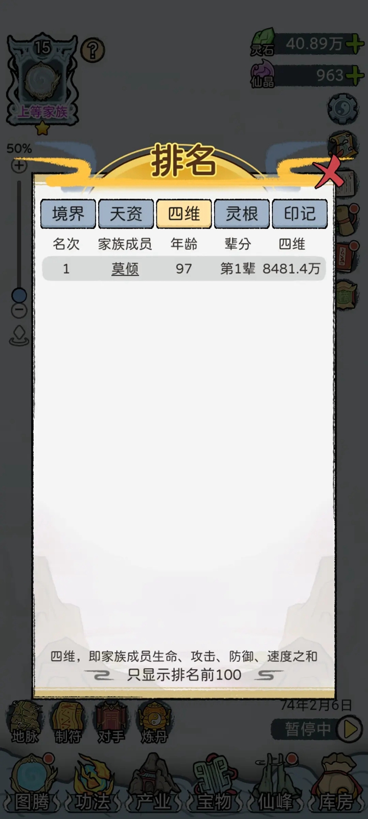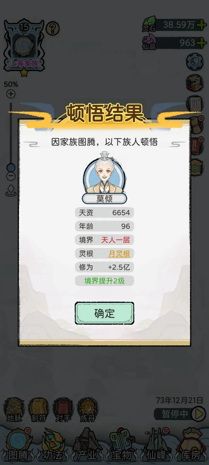 还有一个家族图腾,增加属性的开局有三个选择,生命攻击力修为,我感觉还是修为好,毕竟都修仙了,寿命也不缺