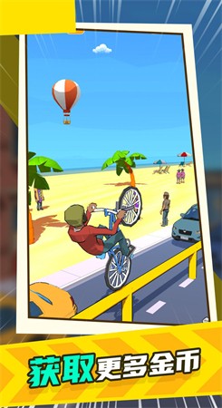 玩家点击屏幕控制自行车在赛道上的平衡,然后躲避在前行过程中的障碍。