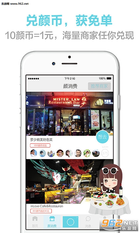 兑颜币,获免单:10颜币=1元,海量商家任你兑现。