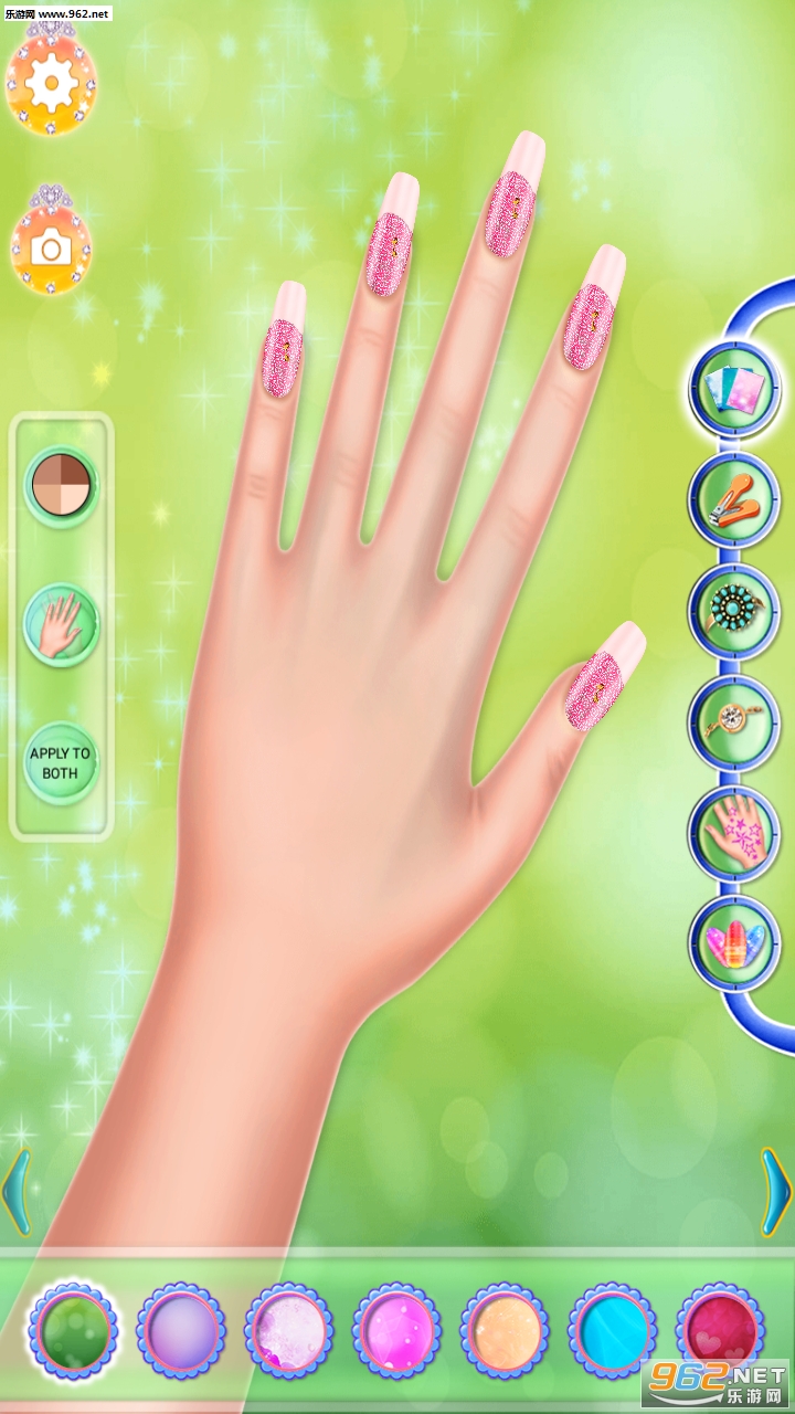小公主爱美甲是一款休闲娱乐游戏,给你的双手做个完美sap吧!你喜欢时尚和漂亮的指甲图案?在这个游戏中你可以玩各种不同的颜色,形状,选择你最喜欢的!所有图案款式新颖,时尚和闪亮。你会如何让你的手和指甲看起来完美吗?用你的想像力和创造力的感觉,证明你可以做的最好的美甲沙龙!