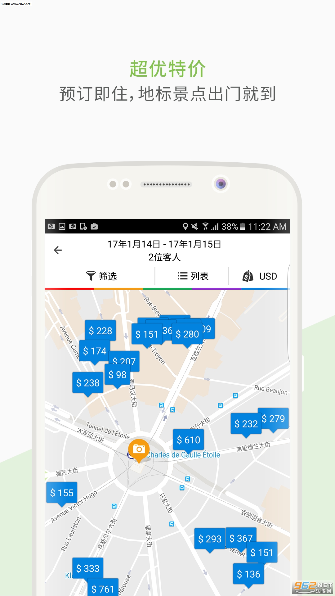 搜索——输入城市、地标或酒店名称,实时搜索身边的酒店住宿,直接地图上定位和比价更直观;