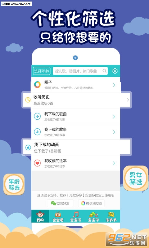 1.儿歌多多,拥有百万儿歌故事资源,适合0-12岁的儿童及家长使用。