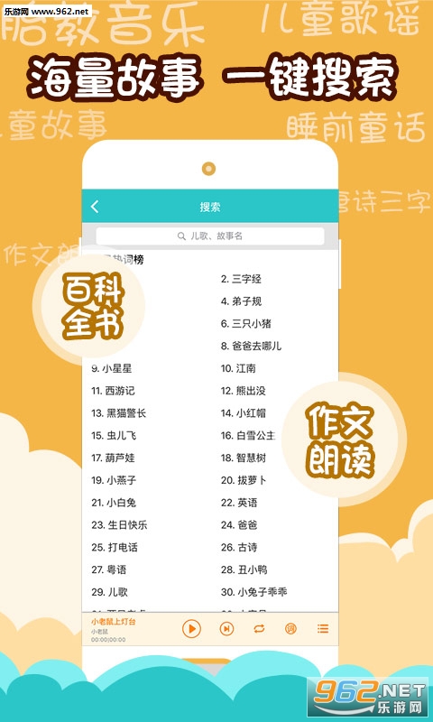 海量故事,天天更新;?儿歌故事屋,给孩子一个快乐的童年。