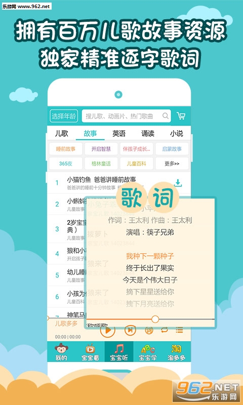 铃声多多团队出品!家长必备,百万儿歌,故事,儿童游戏,早教,童谣,动画片,童话!