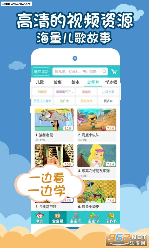 5.动画儿歌故事、支持缓存,让宝宝随时都能听到、看到。