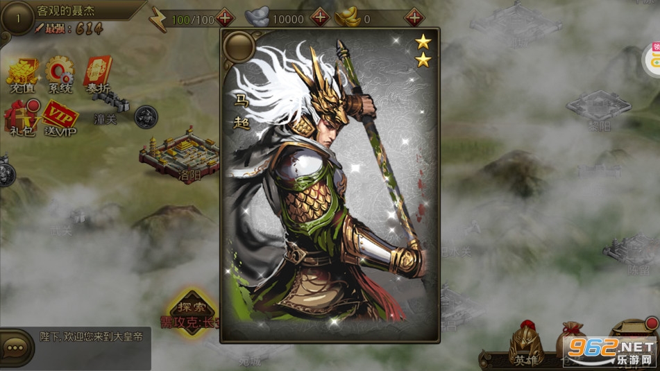 《大皇帝》是一款三国策略游戏,你可以招募上百位三国时期的名将,如关羽、张飞、赵云等,与他们并肩作战。每位武将都有独特的技能和属性,你需要根据战场情况和敌人特点,精心挑选武将,组建最强大的阵容,运筹帷幄,争夺天下。