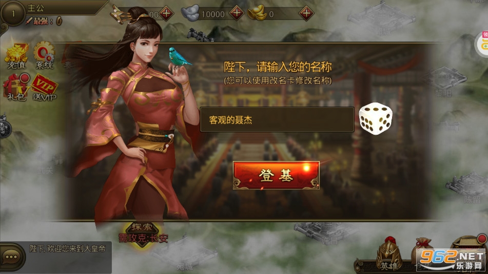 《大皇帝》一款为策略游戏用户量身定制的三国SLG。128座城池,组建自己的势力,亲身参与东汉末年争夺天下霸权的三国征途!玩家亲临乱世汉末,击杀叛贼,临危受命,一举称帝,就此展开一条别样的三国帝王之路。在《大皇帝OL》中,您可以不断地开疆扩土,收复更多的领地,每一座城池都能为您之后提供大量收益,英雄,银两,宝物通通在手!问鼎江山还不够,成为最强帝王才是正道。王者之巅,争夺积分名次,从草根组攀登至尊组;诸侯争霸,经历数轮淘汰,登顶全服帝王宝座。成为无数豪杰仰视的真正大皇帝!