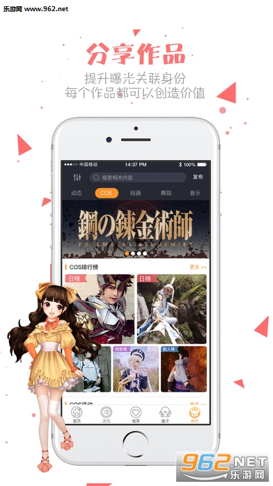 包括化妆、摄影、服装、道具、工作室等等... 除此之外用户可以通过平台发布作品、圈子讨论、次元资讯、漫展购票等进行线上社交活动,给用户提供方便快捷的一站式服务。