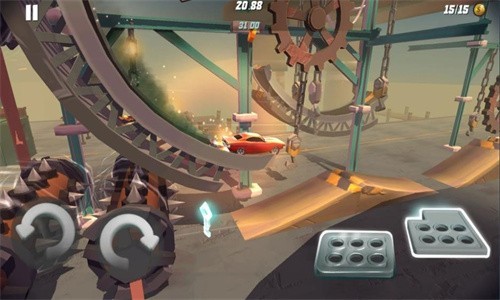 3、各种奇特的场景设置,吊桥,障碍物,螺旋赛道十分挑战你的操作手法,尽情展示你的赛车特技吧。