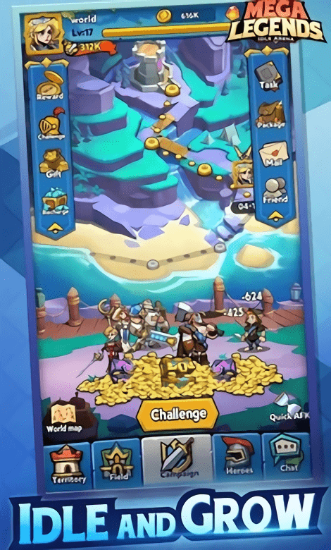mega legends是一个放置类的角色扮演手游,玩家招募各种各样的英雄,加入你的队伍,开始冒险之旅.不断地挑战强大的敌人,不同英雄之间的羁绊和搭配,让自己立于不败之地,将胜负一手掌握.
