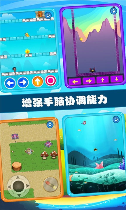 3.游戏包括几十款趣味小模块,主要是为了锻炼儿童宝宝的智力发展水平,增强手脑协调能力,带有一定的思考和策略性。赶快让孩子来挑战闯关吧!