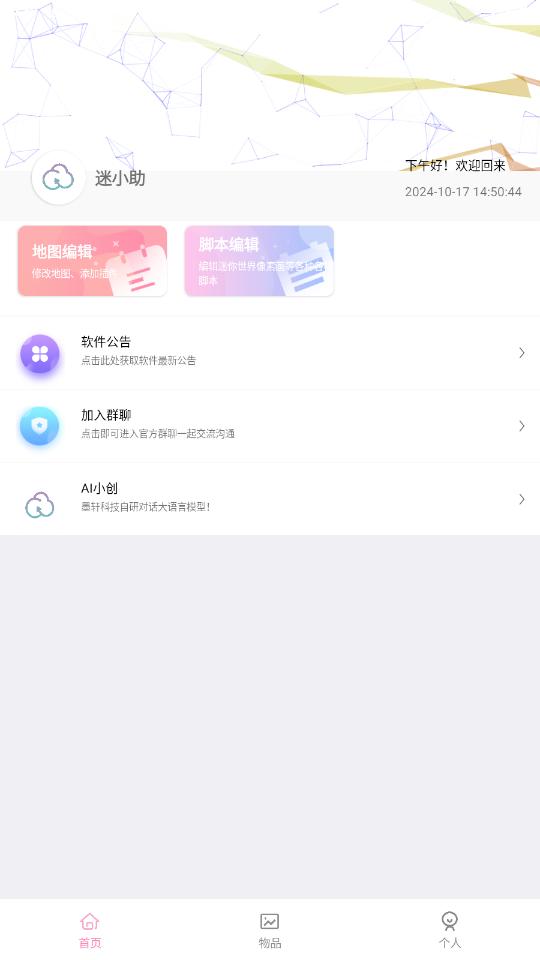 《迷小助app》由墨轩科技云少工作室匠心研发,是迷你世界玩家的必备助手。该应用集背包制作、插件中心、插件制作及物品查询等多功能于一体,旨在帮助玩家轻松打造个性化游戏体验。无论是新手入门还是高手进阶,迷小助都能提供全方位的游戏辅助,让玩家在游戏世界中畅游无阻,享受无限乐趣。
