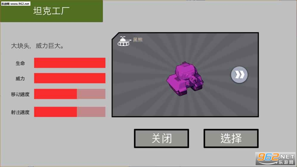 1、三种不同属性坦克选择。