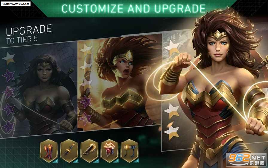 不义联盟2为您提供多种方式,来打造、升级、培养DC标志性人物的队伍。通过收集角色和稀有的装备并用等级合成和星级系统来进行升级。装备系统为您的人物提供新的外观,以及生命值、技能和战斗力的加成。
