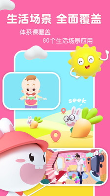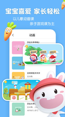 《成长兔英语app》是一款非常实用的儿童英语学习软件,主要针对六岁以下的小朋友们打造。准备了丰富的课程以及学习资源,家长可以在软件中和孩子进行互动,在游戏中让他们对英语进行启蒙。有需求的话就快来下载吧!