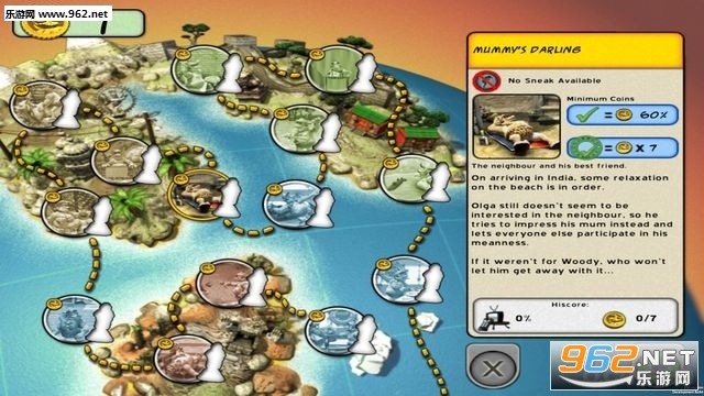 这是一款搞笑风格的休闲策略游戏,游戏的主要目的就是通过设下各种恶作剧来整蛊讨厌的邻居以通关
