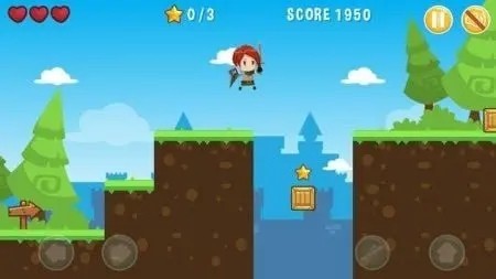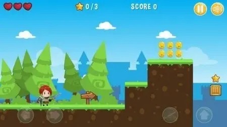 2、采用了经典的横版平台跳跃玩法,一路冒险前进,收集金币击败怪物。