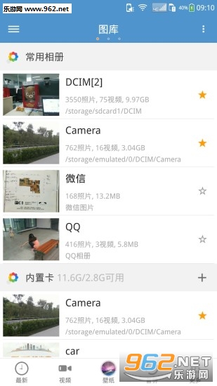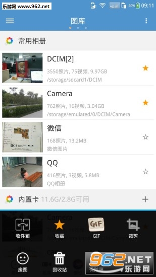 4.手机图库轻松管理手机上所有图片,并按照片、视频、GIF归类、图片、qq图片归类;并自动查找系统隐藏及缓存图片,方便您清理垃圾图片;