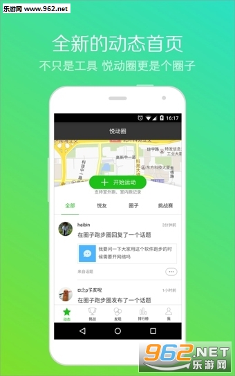健身模式:全新上线的运动模式,让你无论在家、办公室、户外,都能利用碎片时间进行健身,减肥塑形就用悦动圈!