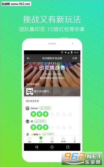 2.印花挑战赛——团体成员互相鼓励,鞭策,集体跑步拿印花,疯抢运动大红包!