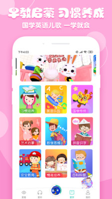 《花生儿歌app》是一款专门为儿童打造的学习教育软件,画面清新地方,针对不同年龄的孩子提供了丰富的学习内容,让孩子能够得到更好的启蒙。不管是儿歌故事英文还是国学内容都能在这里找到,有需求的话就快来下载吧!