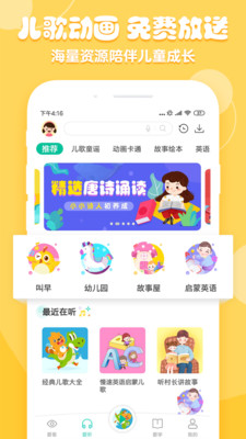 专门为喜欢儿歌的朋友们打造的软件,软件内拥有丰富的儿童学习资源内容,让孩子能够全方位系统化的学习各种优质的内容,非常实用。