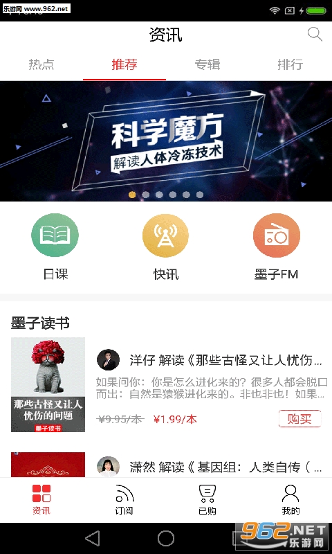 墨子是“一点科研”旗下开展深度科普的科技资讯分享app,用图文、音频、视频的形式传播科技知识,包括日课、快讯、科答、墨子FM等多个栏目,以及四十类科技专题。