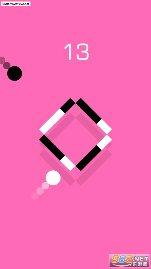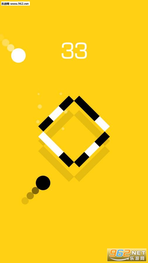 会有白色和黑色两个颜色的小球不停的向你的方框飞来,旋转改变边框的颜色,让小球无法触碰到与其相同的颜色,这样就可以将它们阻挡在外面了