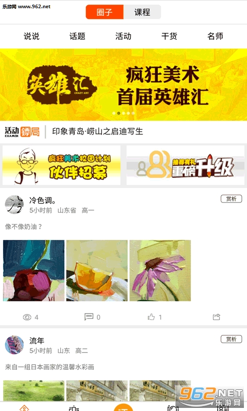 疯狂美术内置评画、评测、机构、推送、直播、课程、好友、圈子八大系统和名师、频道、资讯、报考四大板块,海量信息任由你取。
