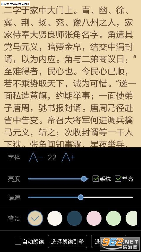 2、智能扫描分析章节目录、可调整字体大小、颜色和背景、可调整屏幕亮度;