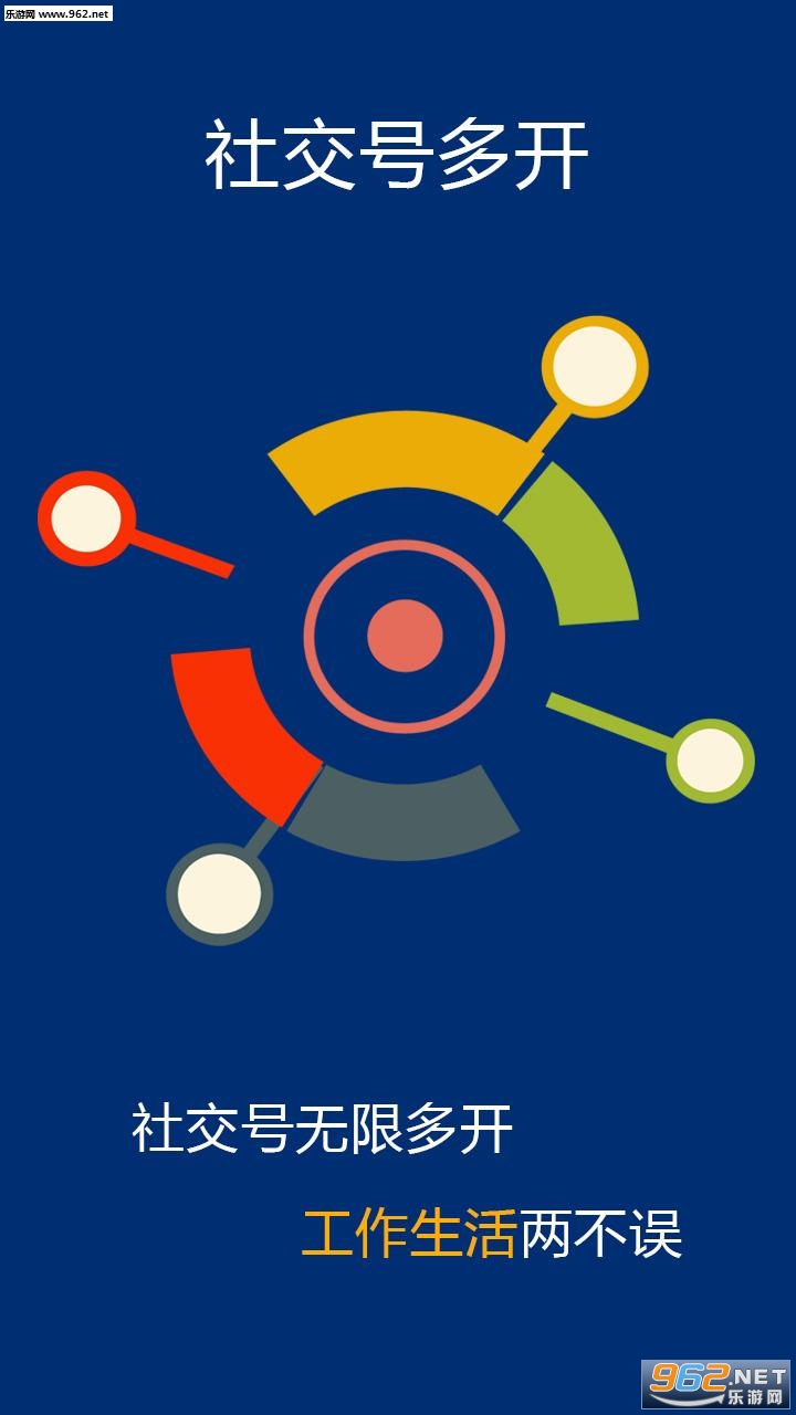 轻松免费实现双开,多开,分身:告别多个账户来回切换的烦恼;一部手机,多个账号同时在线,放肆分享,放肆聊天。
