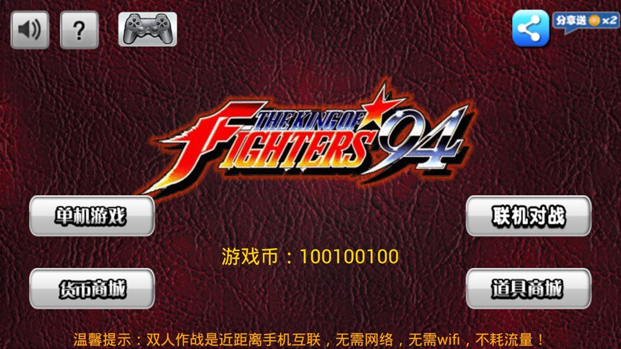 《拳皇94》本街机特别推出蓝牙对战模式,可以和你的朋友通过蓝牙进行PK哦。同时为玩家免费提供了无敌、无限必杀等热血模式。使用虚拟摇杆操作,玩起来一定会让你热血沸腾、畅快淋漓。