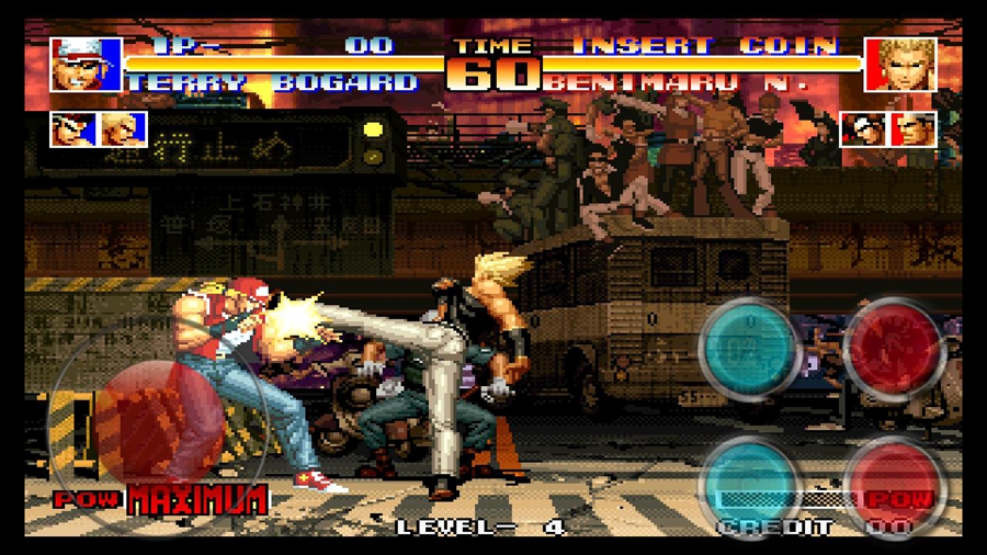经典的拳皇游戏,有着众多的角色可以选择体验,点击滑动屏幕,灵活的控制角色移动,快速的进行一些指令的组合可以释放必杀技等强力的技能,喜欢的朋友可以下载试试。