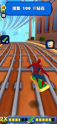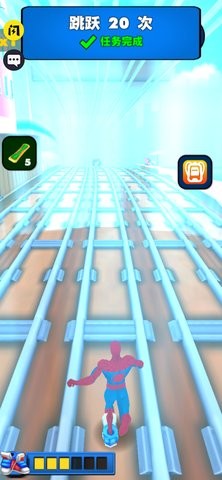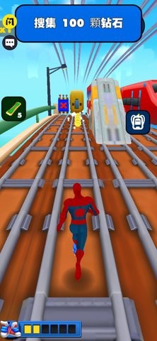 2、你和蜘蛛英雄跑得越久,你就会变得越快,因为你会滑,跳和冲,以躲避公共汽车。