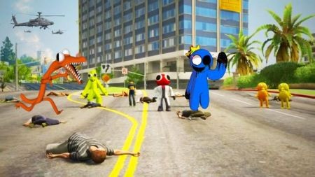 摧毁敌人的汽车和直升机,获得枪支游戏体验,在玩彩虹朋友的同时也有很多乐趣。