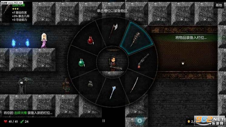 关于武器方面,武器的种类并不算很多,但都有自己的特性,比如武士刀,按攻击时会自动瞬移到附近的一个敌人旁边砍他,而且没有冷却,就是说你攻击力够高可以一路秒过去。
