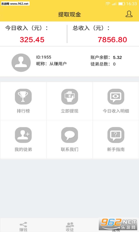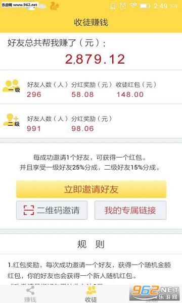 1、邀请好友:邀请好友加入,好友注册成功后赚取零花钱的同时,您也可以获得收徒奖励。