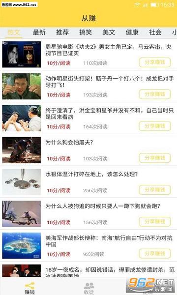 《从赚app》是一款看文章就可以赚钱的阅读软件。软件内每天都会为用户推送各种新闻以及类型不同的优质好文,用户如果把喜欢的文章分享给好友,在好友阅读了文章之后用户将获得收益。坐着看书就能赚钱,你们真的不心动吗?