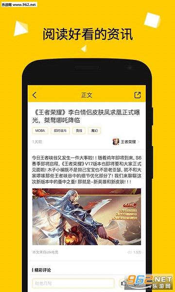 1.首页精品游戏、资讯阅读推荐。