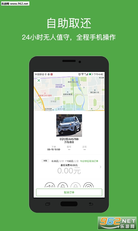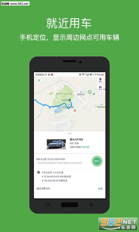 3、【取车只需步行5分钟】:数百个取车网点,打开APP,就近下单;
