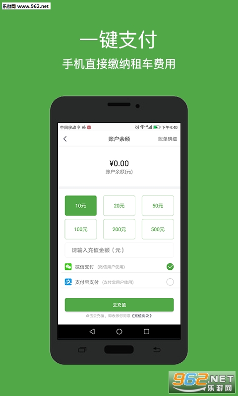 4、【自助缴费】:手机可直接缴纳租车费用。