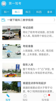 第一驾考app是专为驾考打造的应用,能随时联系科目一和四的题库,采用全国最新版的考试大纲,拥有科目二和三的各种教学视频和考试流程,是您驾考的好帮手。