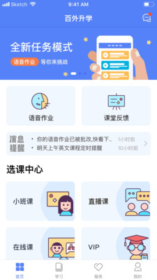 百外升学是一款学习辅助APP。运用具有语音作业功能和课堂反馈功能。语音作业功能:用户可以听短文音频扩展讲解,跟读短文,以上传录音的方式提交作业。系统会根据语音测评功能对上传的语音作业进行评分。课堂反馈功能:老师可以根据学生的上课情况,通过文字、图片、录音等对学生进行点评。家长同时也可以根据老师的反馈和老师互动。
