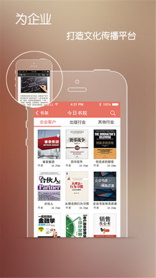 《今日书院app》是一款致力于帮助企业进行文化传播,加强品牌建设的教育软件,软件内拥有丰富的不同行业的优质书本,员工能够随时进行阅读,提升自己的专业能力以及综合素质能力,有需求的话就快来下载吧!