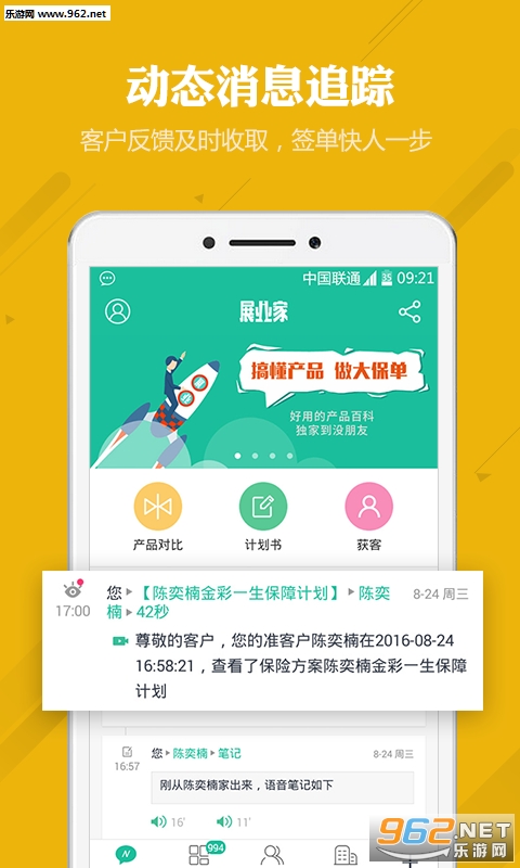 保险展业家是一款专为保险代理人打造的随身保险展业神器,数百万代理人保险销售必备!客户意向追踪、产品详尽拆解、独家计划书…分分钟出大保单!