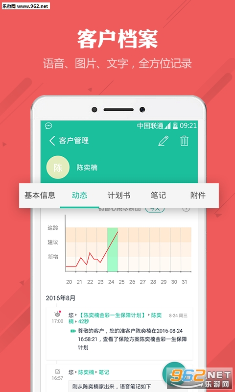 6、语音/文字笔记、照片资料随手添加,客户管理告别笔记本;