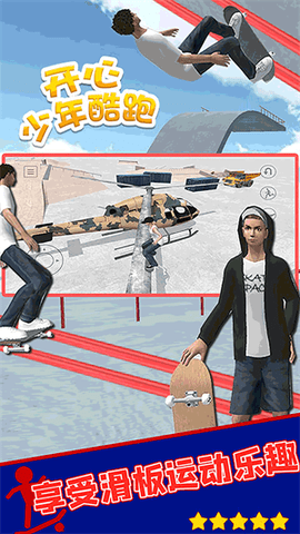 开心少年酷跑是一款非常好玩的跑酷游戏,游戏里面玩法内容非常丰富,玩家需要使用滑板进行各种冒险参观,让你体验最真实的滑板乐趣,游戏关卡超多,每个关卡都能给你带来不一样的游戏体验,感兴趣的小伙伴快来下载吧。