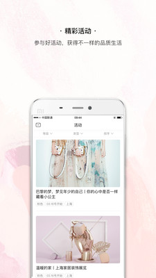 独家活动:卡枚连会员独享福利,涵盖最全的活动类别,会员可参加课程、旅游、时尚、投资等领域的几千个高品质活动。