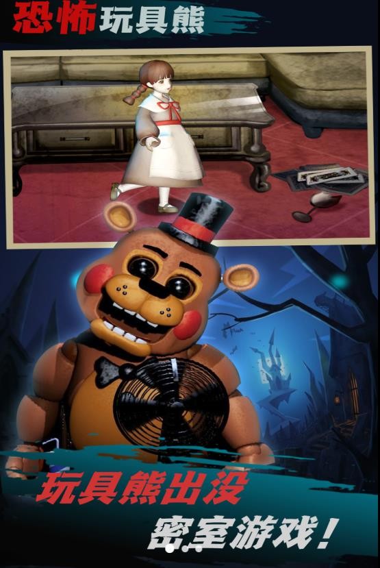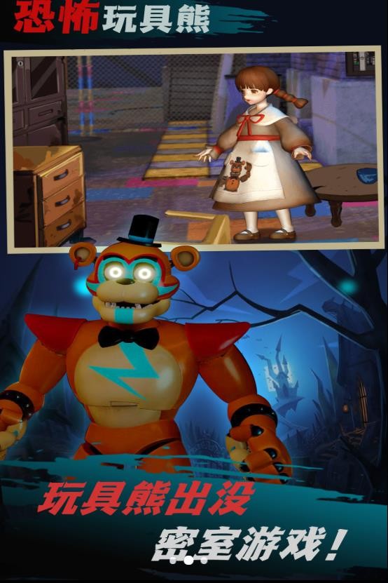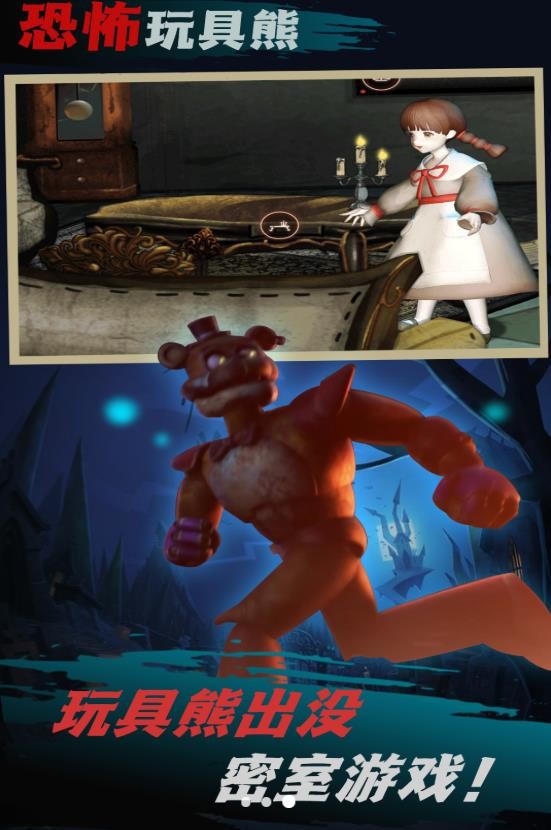 噩梦国度逃生是一款卡通风格的密室逃脱游戏,恐怖的游戏氛围,玩家将在这里展开紧张刺激的密室逃脱这款游戏全程都笼罩着阴森诡异的气息,可怕的玩具熊随时都会出现在你的四周,一定小心不要被玩具熊发现了,需要用你的聪明智慧躲避玩具熊的追击,找到解谜逃脱的方法,感兴趣的玩家快来下在体验吧!