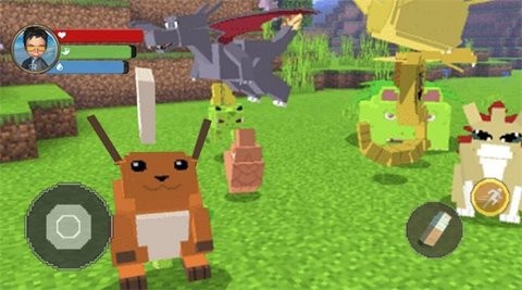 3、你将会邂逅像素方块风格的精灵萌宠们,使用神奇口袋收服它们。